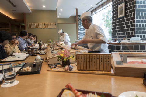 地下1階にある、寿司店「濱芝」です。外観はこんな感じ。