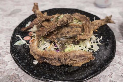 オーダーした刺身定食が出てくる前に、お店のサービスで鯵の中骨を揚げたものを出していただきました。これが香ばしくてなかなか美味しいです。