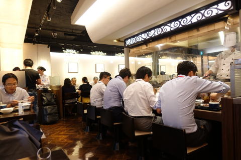 店内はこんな感じ。カウンター席と周りにテーブル席が並んでいます。結構広いですね。それに回転が早いようで、行列が出来ていても、それ程待たずに入れるようです。