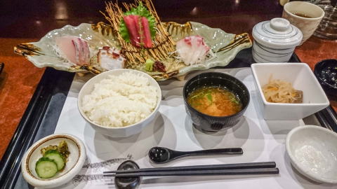 昼はランチメニューがあります。日替わり定食は、とんかつでしたが、ここは海鮮が美味しそうなので、お刺身定食を頂きました。