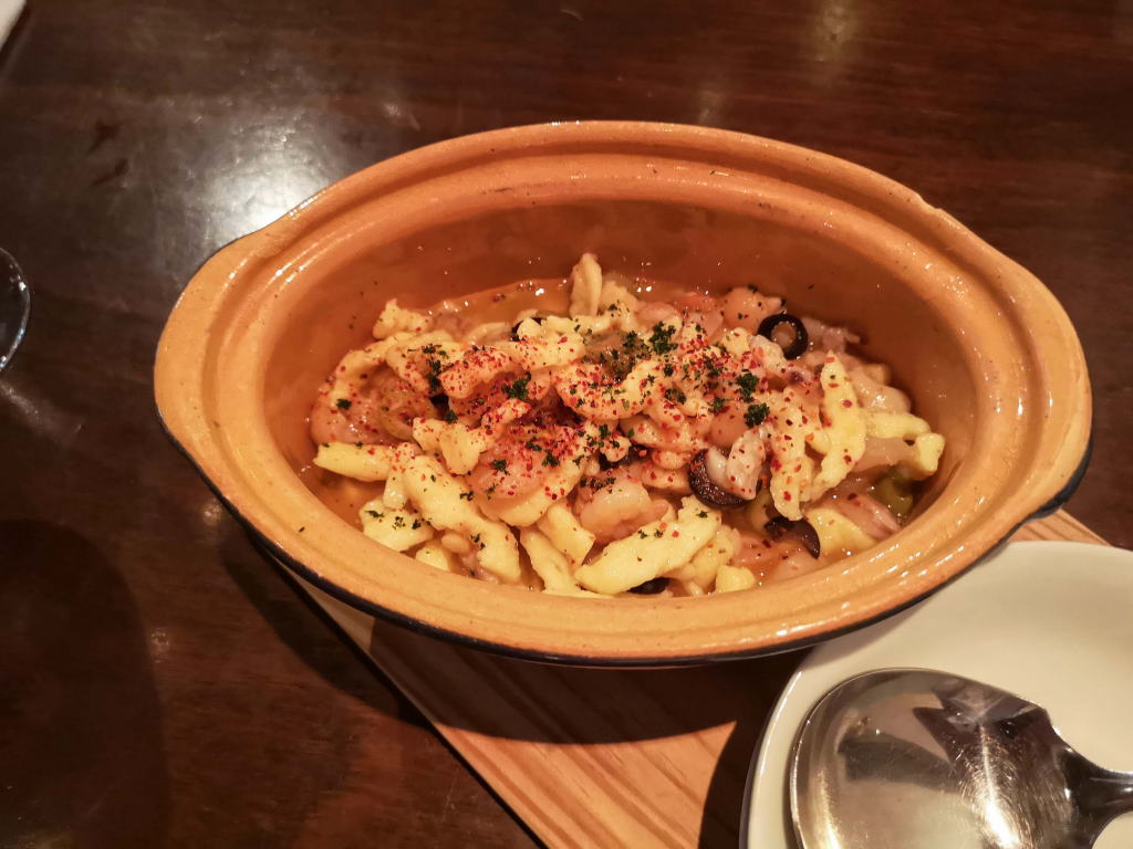 豚肉と海老のパスタ。出汁の味が美味しい。