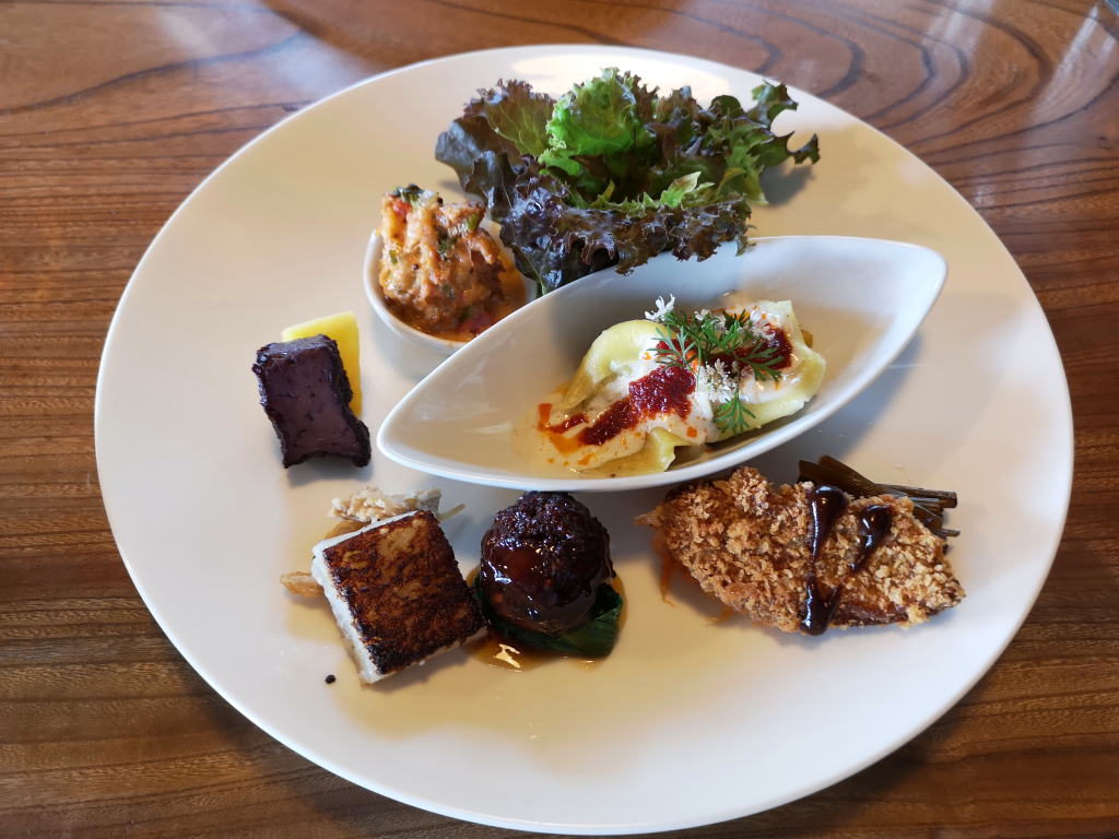 手前のカツは、お麩のカツです。中央はペリメニです。どれも手が込んでいて、美味しいです。