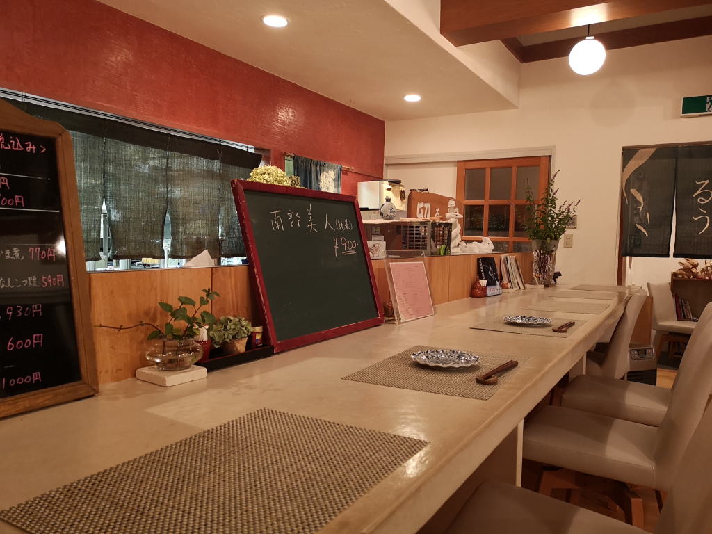 店内は天井が吹き抜けになっており、明るく広いです。カウンター席と小上がりの座敷席があります。