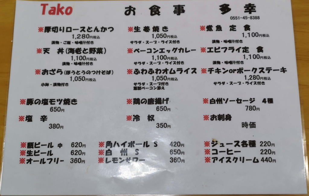 今日は、北杜市の長坂IC近くにある食堂「多幸」で夕食です。