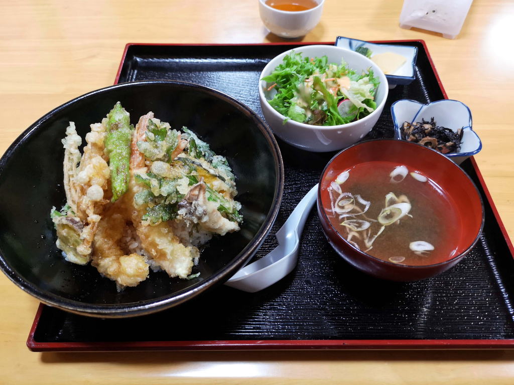 ここは和食から洋食までいろいろなメニューがありますが、今日は天丼をオーダーしました。