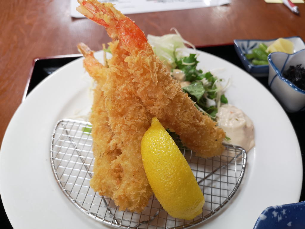 私は、海老フライ定食をオーダーしました。しばし待って海老フライ登場です。