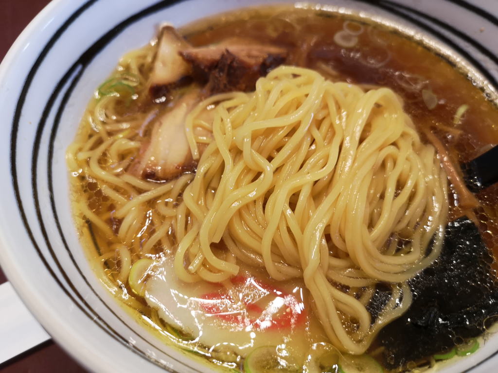 麺はほぼストレートに近い、中太麺。のど越しが良いです。