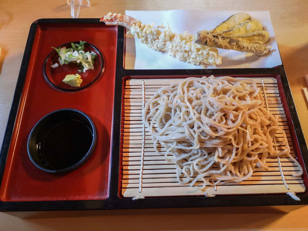 蕎麦はいつもの美味しさです。天ぷらはナスも海老もサクッと揚がっていて美味しいです。