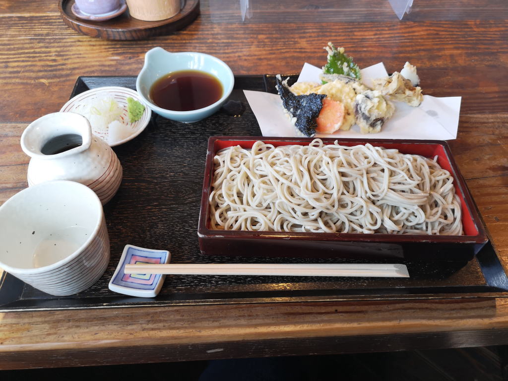 程なくしてお蕎麦登場。天ぷらは衣が薄く、さくさく。蕎麦は少し太目でコシがしっかりあります。美味しいお蕎麦。
