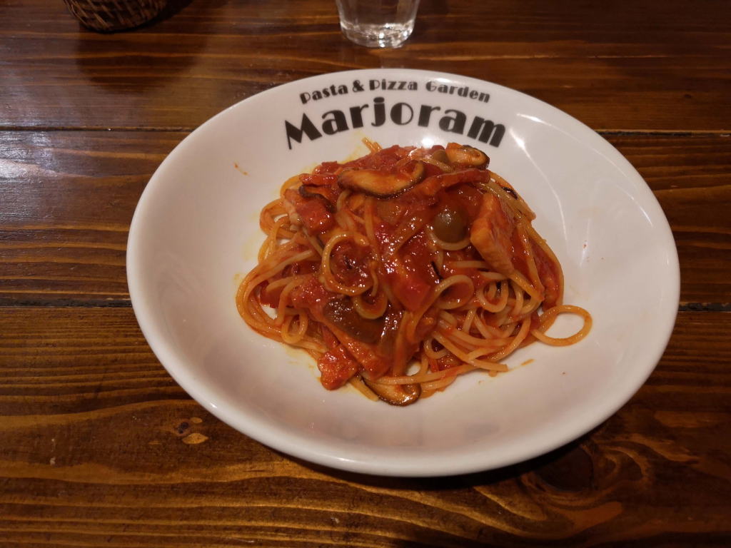 結構濃厚なトマトソースがかかっていますね。パスタは少し太目。コシはあります。