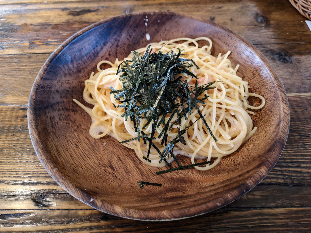 こちらは、めんたいパスタ。あまり盛り付けに凝ったという感じではありませんが、ボリュームは充分あります。