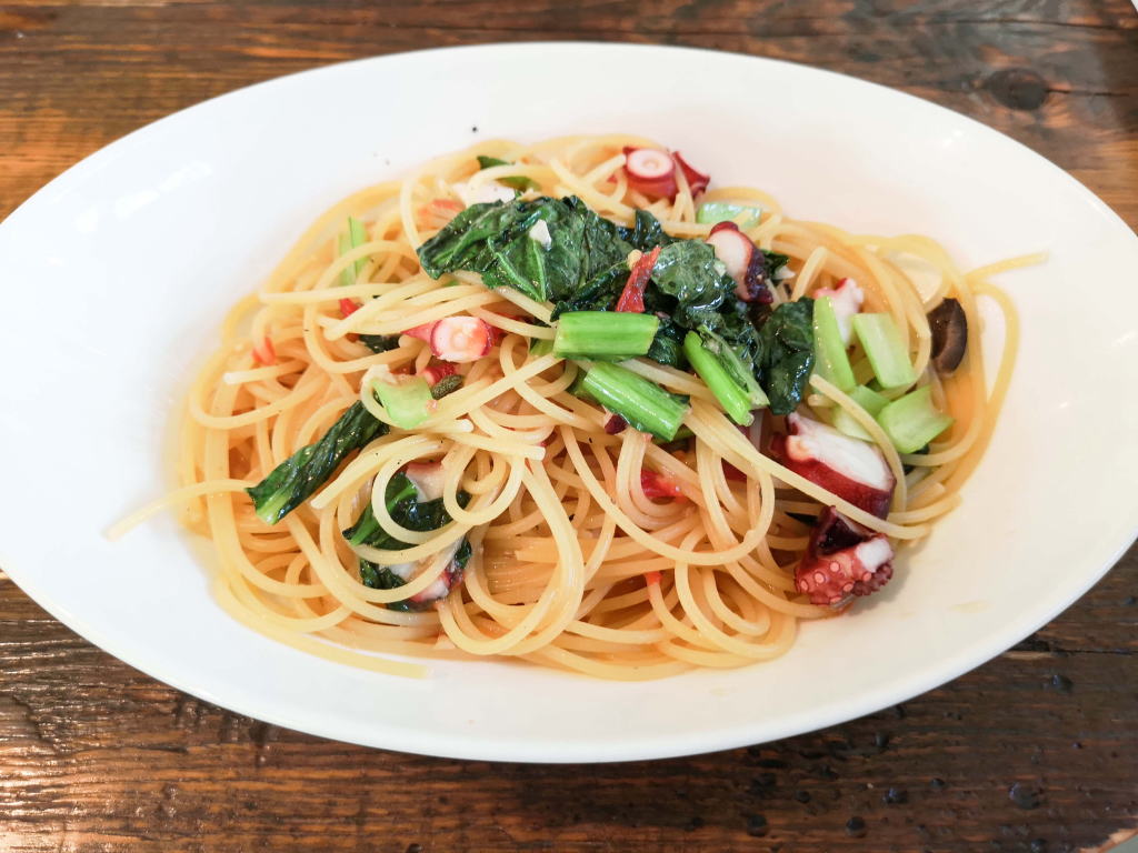 パスタはこんな感じです。タコは比較的噛み応えのある感じ。少し梅風味かな。美味しいパスタでした。