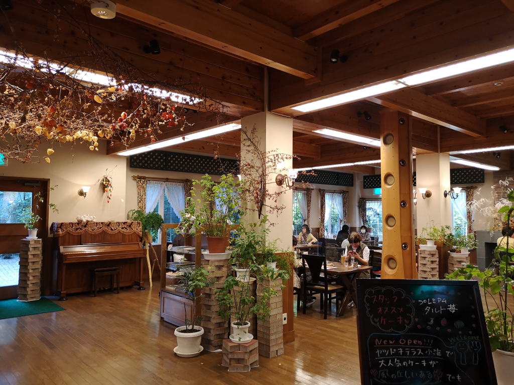 店内はかなり広く、テーブル席が並んでいます。レストランの外の庭がイングリッシュガーデンになっており、有料で見学ができます。