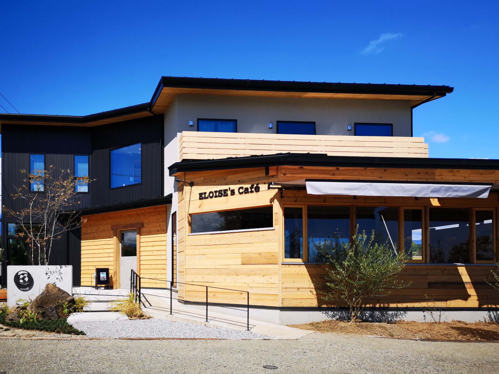 エロイーズカフェです。ここは、軽井沢で人気のカフェの八ヶ岳店としてオープンしたそうです。外観はこんな感じ。