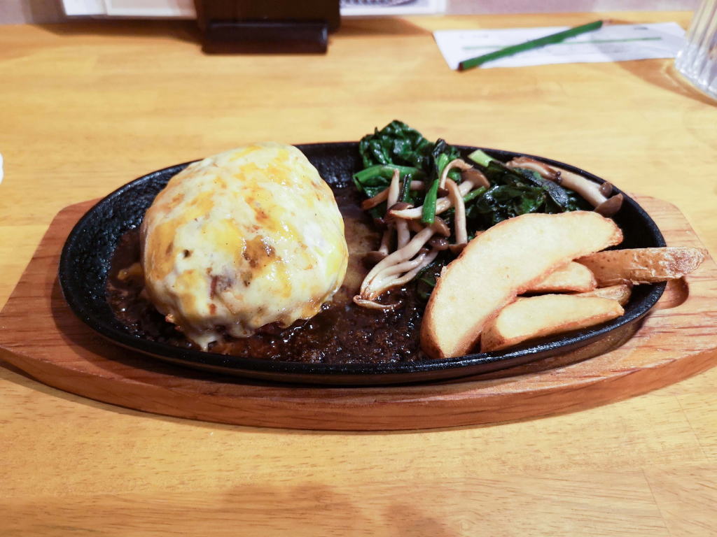 今日はカツカレーではなく、チーズハンバーグステーキをオーダーしました。