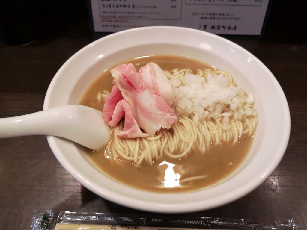 名前に煮干しと付いている通り、煮干しを使ったスープです。スープを飲むと、結構とろみがありますが、クドイ感じでは無いですね。