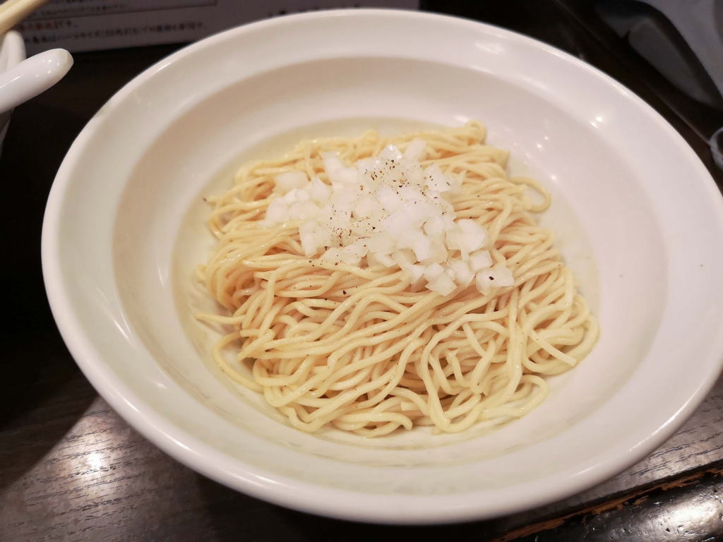 はじめは、この和え玉だけで食べます。これでもしっかりと味が付いているので美味しいですね。