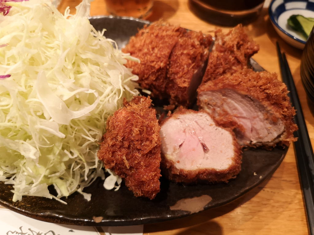 カツはカラッと揚がっていて美味しいです。ただ、肉は柔らかいですが、肉の風味は薄い感じがします。これは林SPFポークの特徴でしょうか。