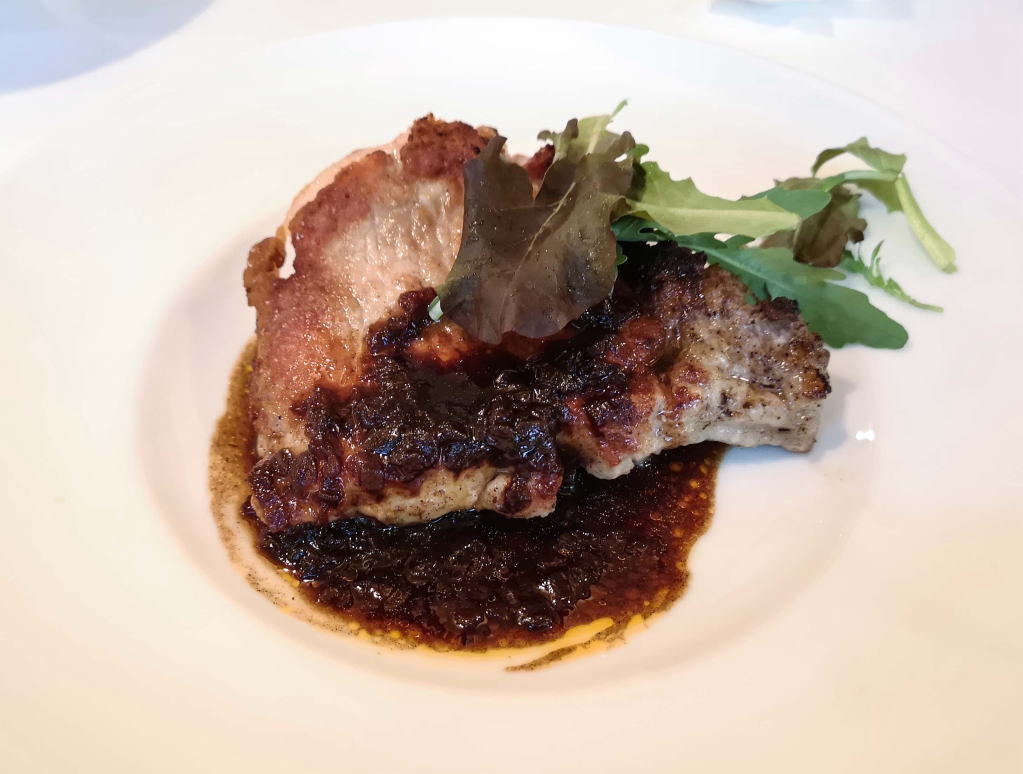 手頃な大きさのポークソテーですね。周りはカリッと焼かれています。
