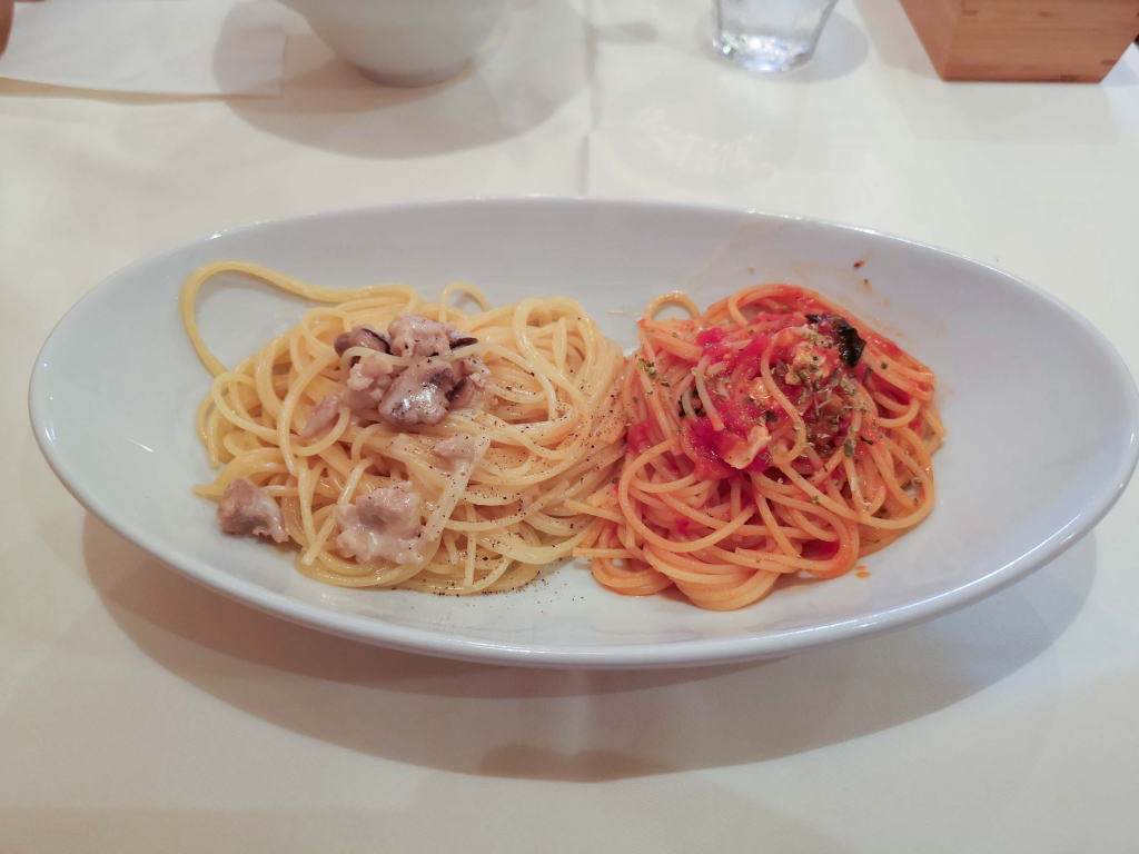 先日他のお客様のオーダーしていたスパゲッティ2種盛りが美味しそうだったので、オーダーしてみました。