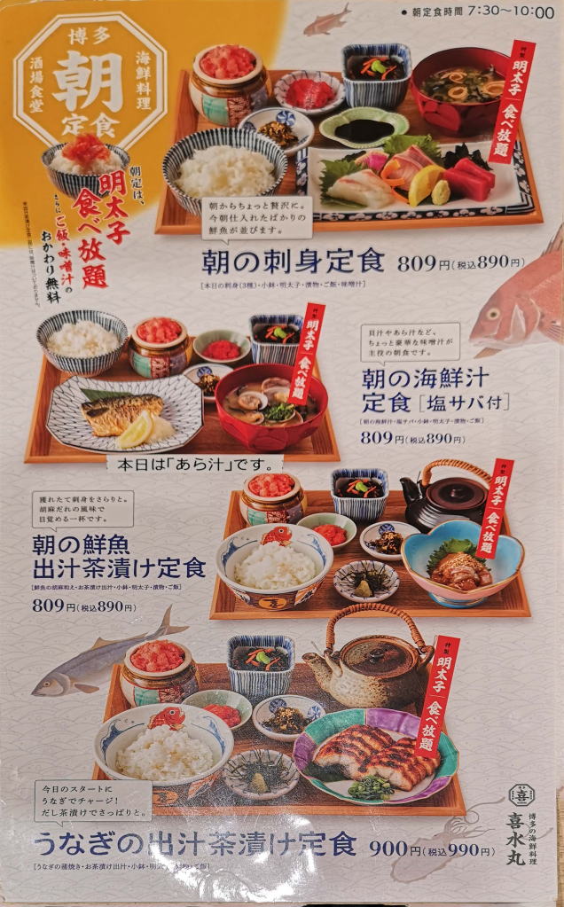 まあ、刺身を沢山食べたいなら他にも店の選択肢があるかも知れませんが、それにしても今は朝です。朝食、モーニングです。