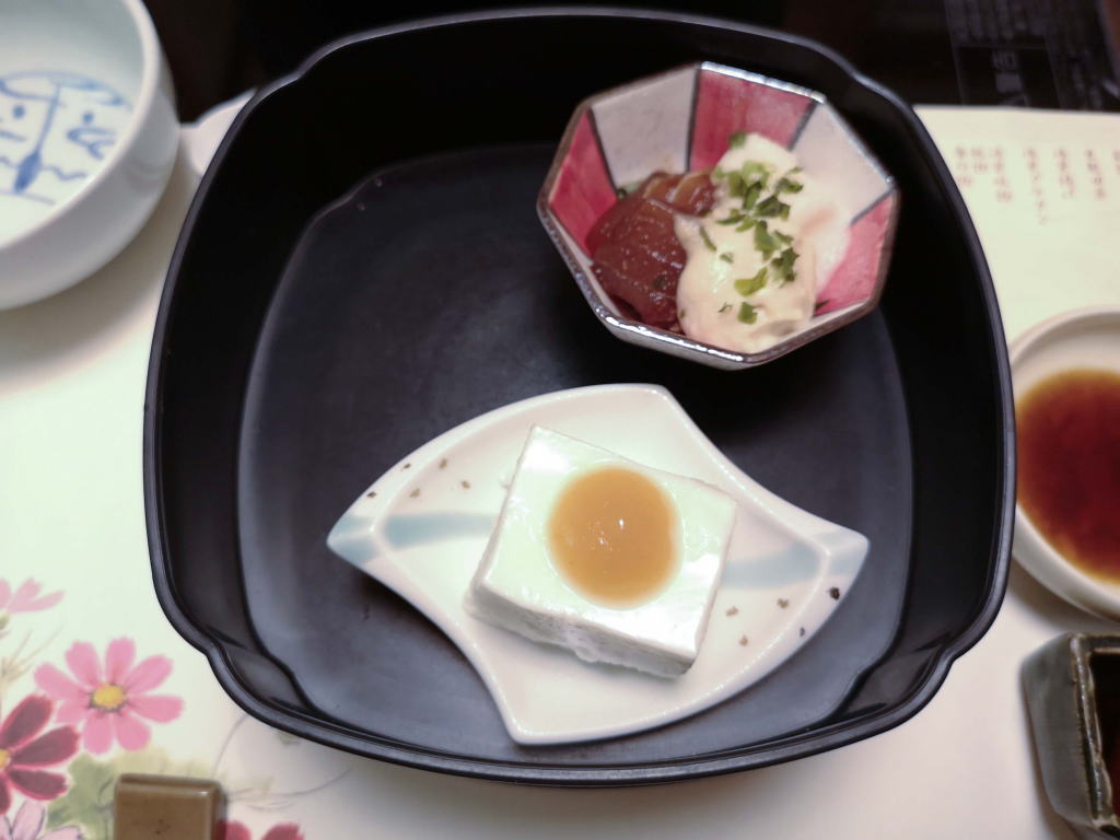 まずは、嶺岡豆腐、鮪の湯葉とろろ掛けです。
