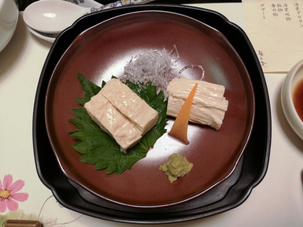次は、湯葉豆腐とたぐり湯葉のお造りです。どちらもコクがあって湯葉を楽しめます。