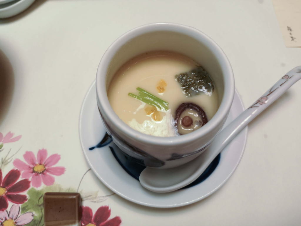 比較的柔らかな茶碗蒸しです。出汁が利いていて美味しいです。