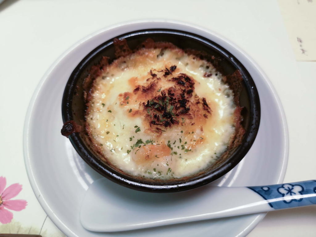 湯葉のグラタンというのも初めて食べました。これは醤油を掛けて食べるようです。