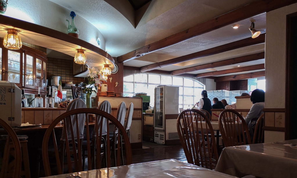 昭和レトロな感じが漂う店内は結構広く、テーブル席が並んでいます。