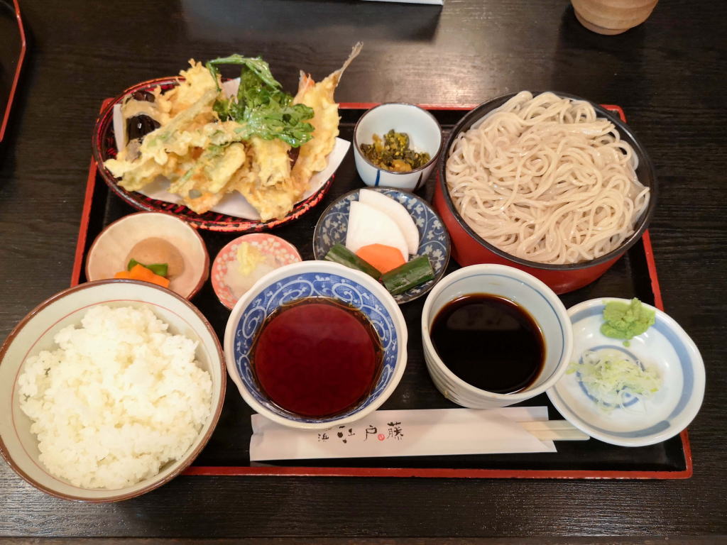 後で知ったのですが、ここ江戸藤は、この「膳もの」のはしりだそうです。料理と蕎麦を半分づつではなく、両方で1.5人前になるようにしている