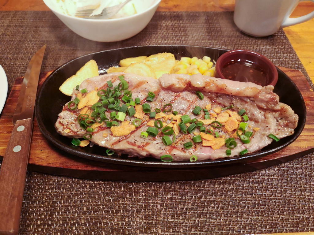 そしてステーキ登場。熱々の鉄板に乗って出てきました。