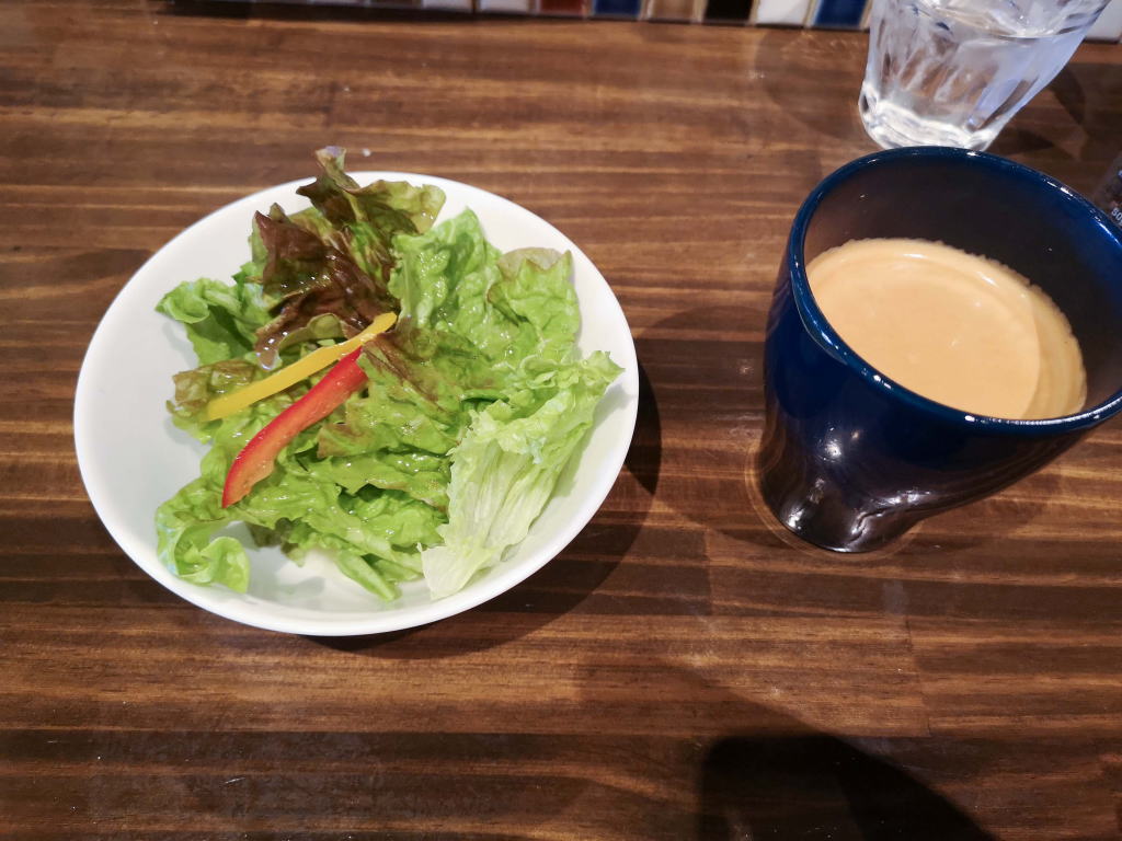 まずサラダが登場。それとドリンクが付いているので、コーヒーをオーダー。