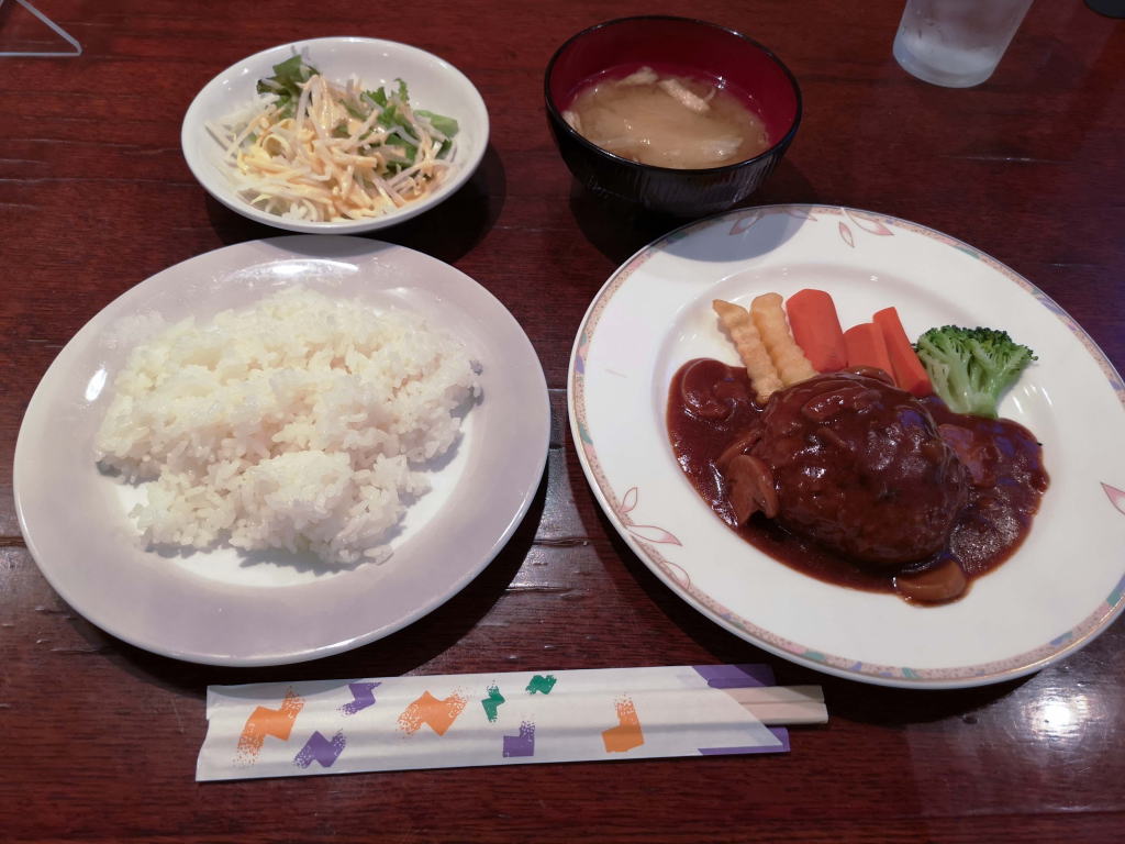 しっかりと大きなハンバーグ。デミグラスソースも濃厚でしっかりしています。