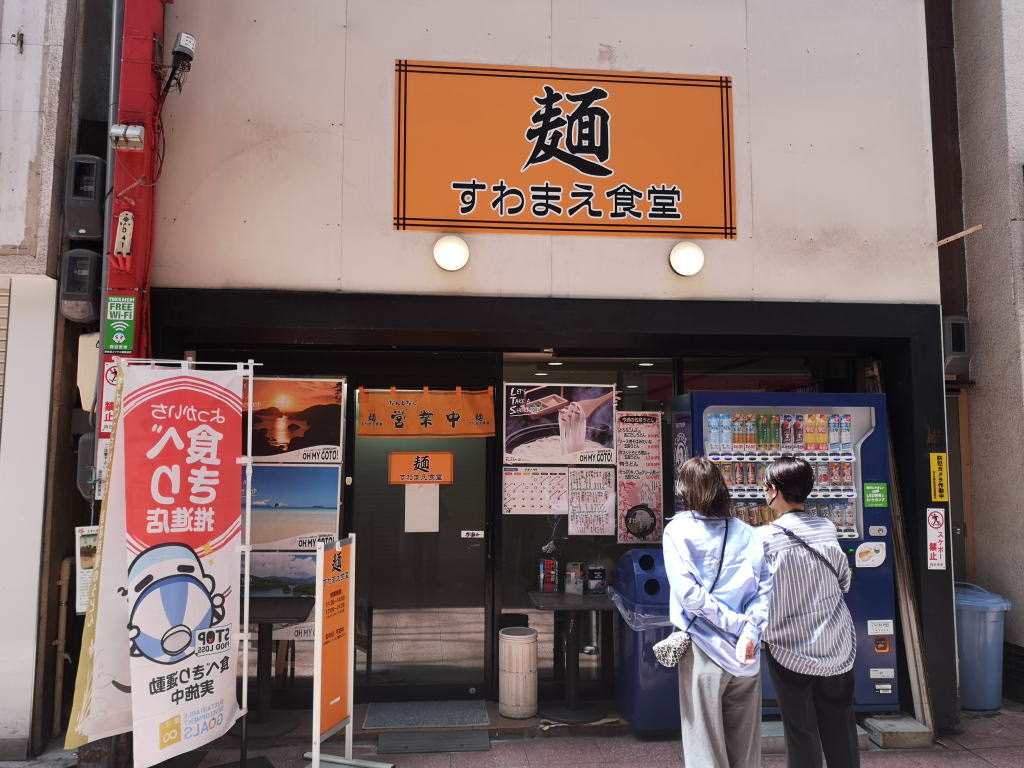 四日市駅からアーケードの商店街を抜けた所にあるうどん店「麺 すわまえ食堂」でランチです。