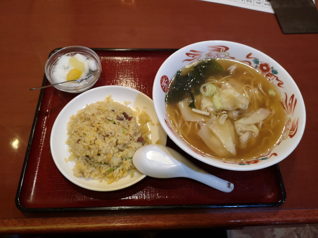 さて、私はランチメニューから、ワンタン麺と半チャーハンをオーダー。