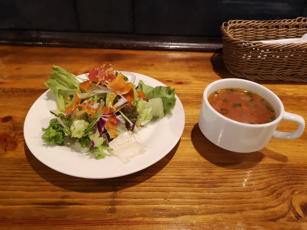 ランチには、サラダとスープが付いています。