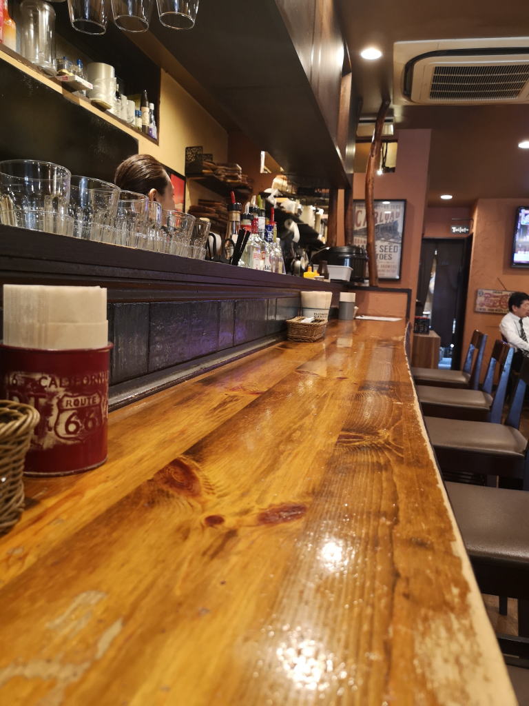 店内は入って左側にカウンター、右側にテーブル席が並んでいます。