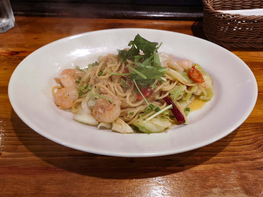 今日は、パスタランチの中から、小海老とツナと春キャベツのペペロンチーノをオーダーしました。