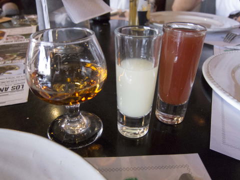 お口直しに、赤いトマトジュースにタバスコを混ぜたような辛い飲み物と、レモン汁そのままのような非常に酸っぱい飲み物が付いてきた。このお口直しの方が強烈だったかも。