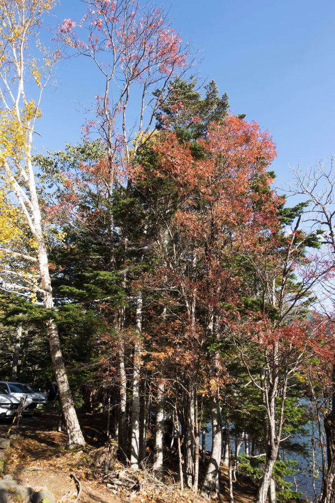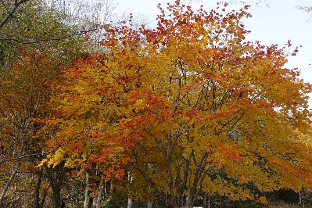 神の子池の駐車場の紅葉