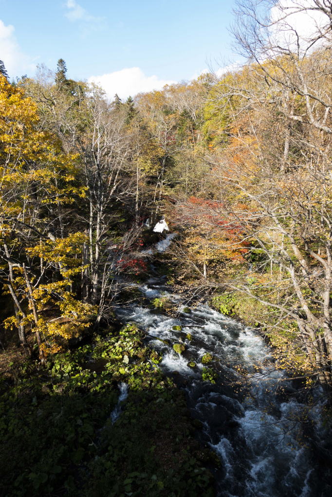 オンネトー湖を後にし、車を走らせると、阿寒川にかかる橋へ。川と紅葉の感じがステキ