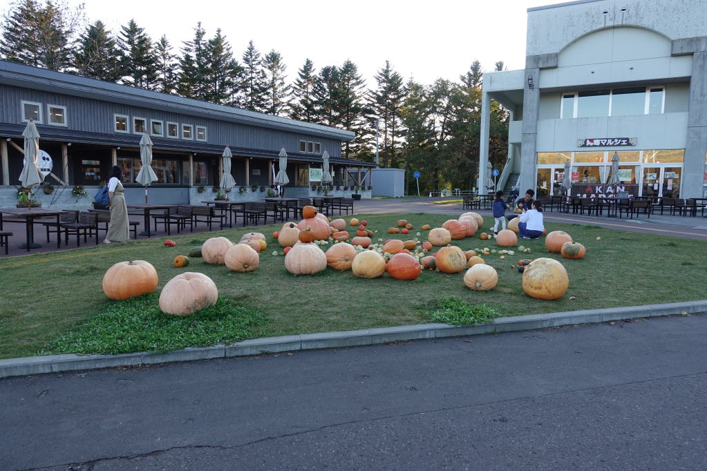 季節柄、ハロウィーンのカボチャが沢山並んでいました。作り物ではなく本物のカボチャ。