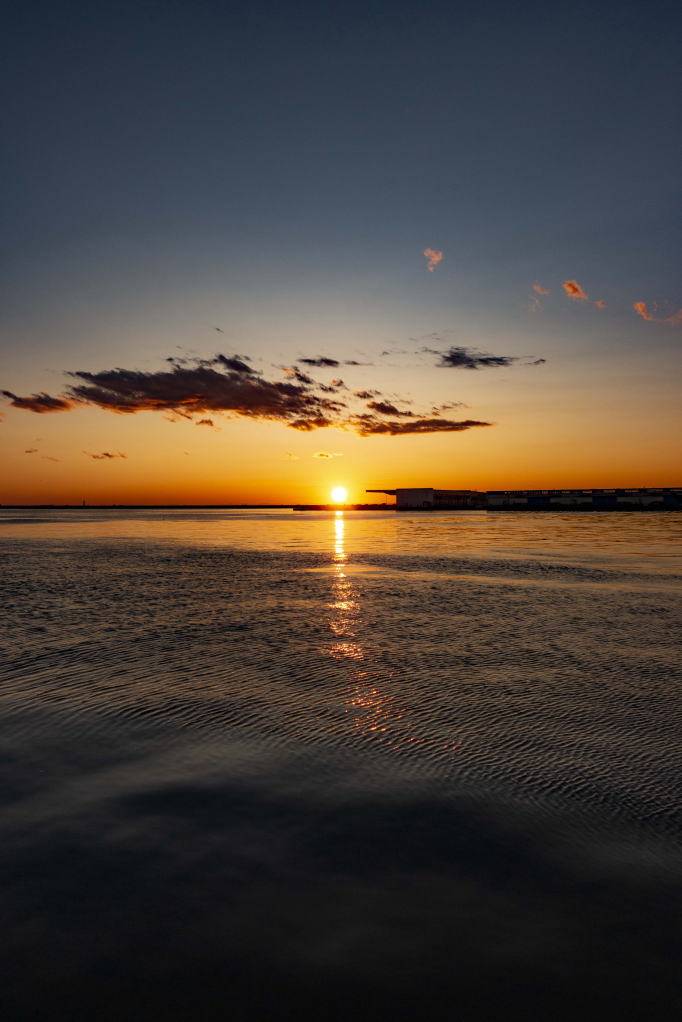 ホテルに向かう途中、港を通ると美しい夕日が見えました。ステキな景色でした。