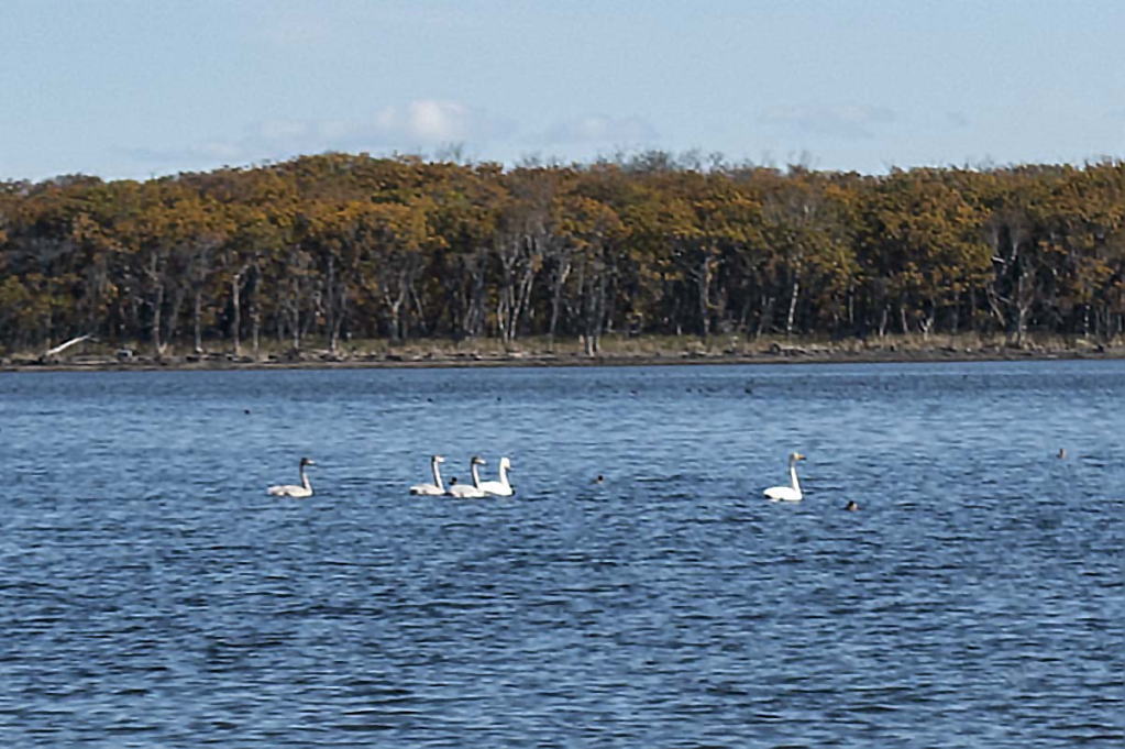 そこに向かう途中、白鳥を発見。静かな水面にのんびりと浮かんでいました。