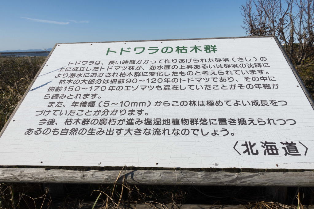 20分くらい歩くと、トドワラに到着。30年前は、本当にトドワラの林という感じだったのですが、今では風化して殆ど残っていません。なんだか残念です。