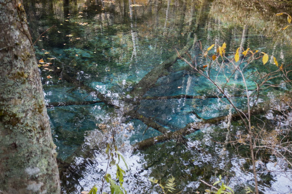 湧き水なので、非常に透明度が高い池ですね。