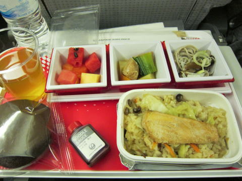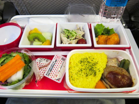 1時間後に昼食。そして着陸前に軽食というパターン。