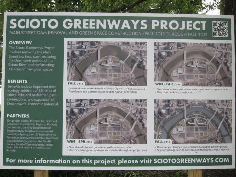 今日も比較的早く仕事が終わったので、コロンバスの市内へ行ってみることにしました。というのは、コロンブスの船のレプリカが川に停泊展示されているという話を聞いたので。で、行ってみると、なんと護岸工事中でした。近くの看板を見ると、今年一杯工事をしてきれいな公園を作るようです。残念でした。