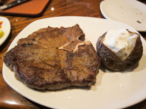 さて、先日同様Tボーン・ステーキをオーダー。ここではPorterHouseという名前が付いていました。大きさは、前回より小さく18ポンド。約510グラムです。